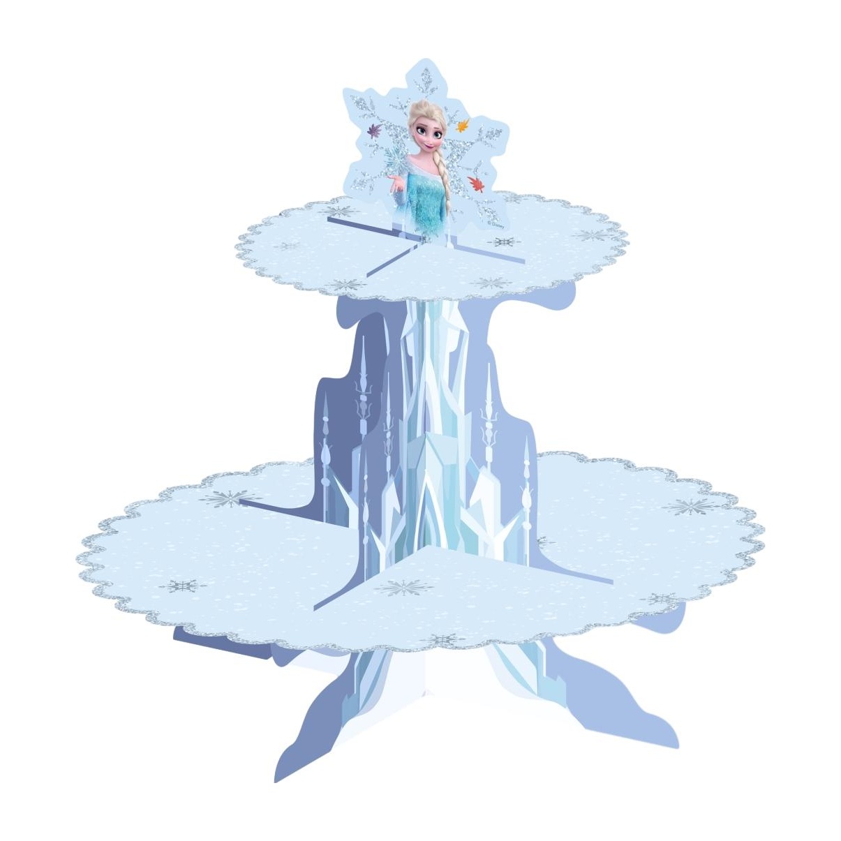 Verleihen Sie dem Tisch einen Hauch Magie mit diesem Cupcake-Ständer im Frozen-Design. Er zeigt eine Elsa-Figur und verschneite Details, die die Dekoration von Kinderfeiern aufwerten. Aus FSC?zertifiziertem Papier gefertigt, verbindet er Optik und Nachhaltigkeit. Der einfache Aufbau aus wenigen Teilen ergibt eine zweistöckige Präsentation - ideal für Cupcakes und kleine Süßigkeiten.
