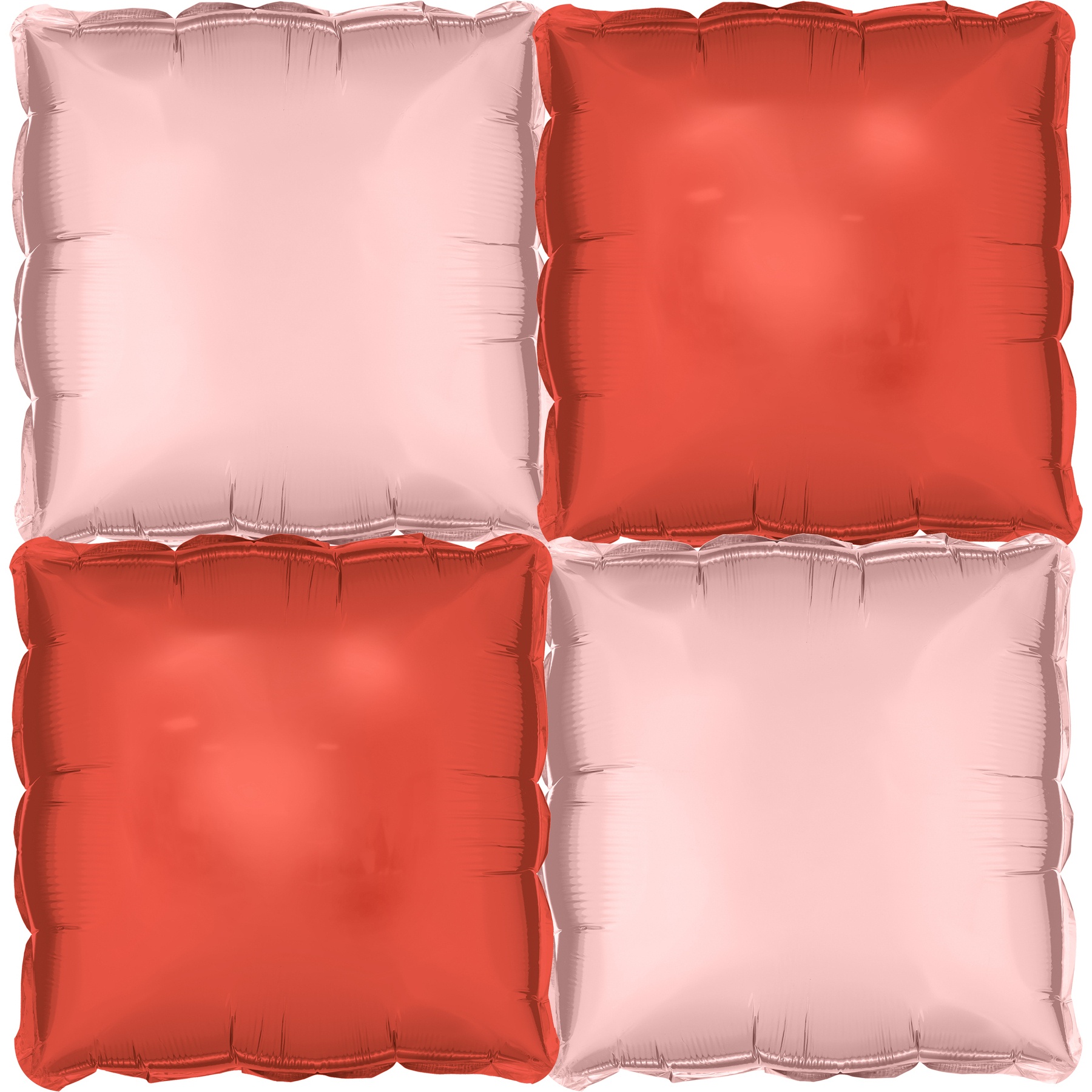 Dekorationspanelballon 35 x 35 cm, rot und rosa - 4 Stück