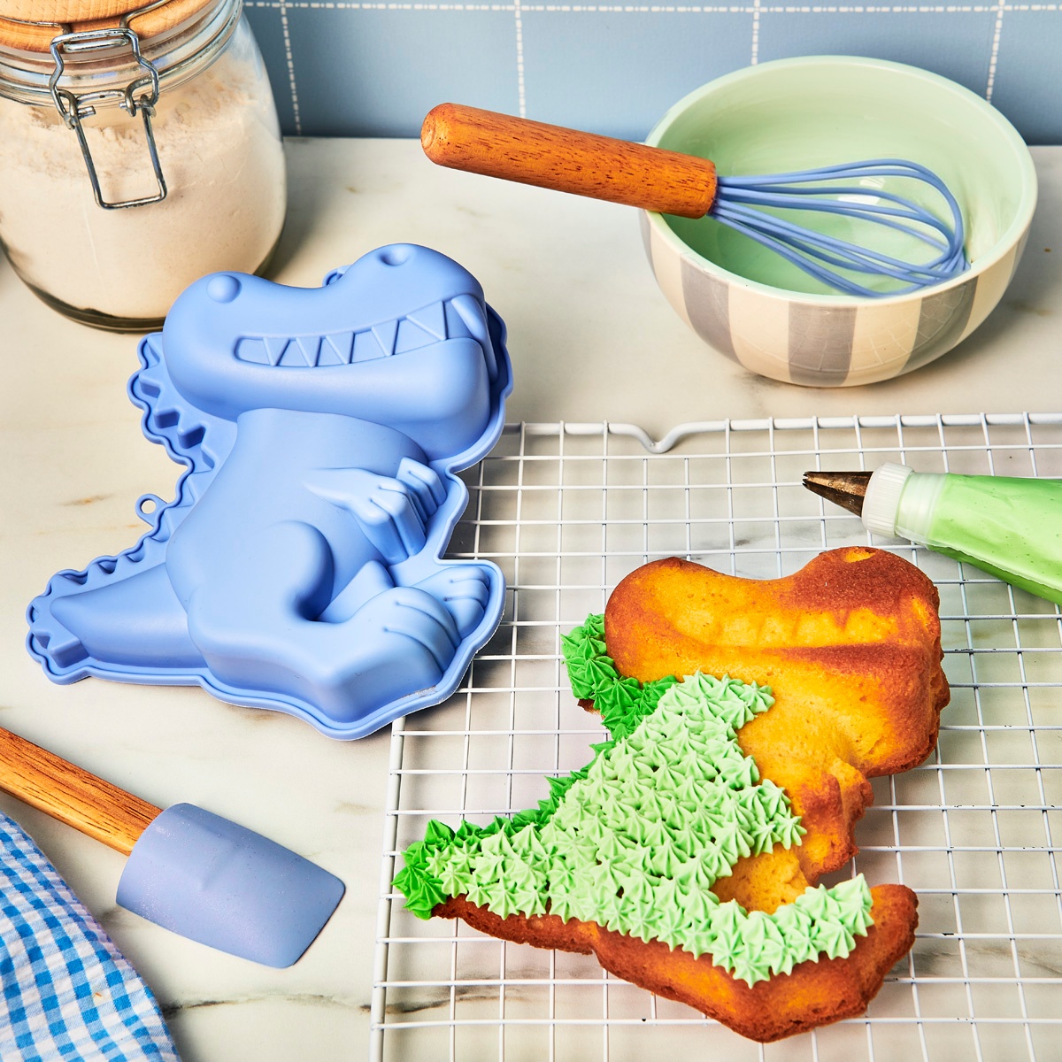 Machen Sie jedes Backerlebnis zum Abenteuer mit dem Dino-Backset von Wilton. Entwickelt, um die Kreativität der Kleinsten zu fördern, enthält dieses Set handliche Werkzeuge, die spielerisches Lernen in der Küche unterstützen. Ideal als erstes Backset für Kinder und als attraktives Geschenk, das zu gemeinsamen Familienprojekten inspiriert. Sicher und robust - gedacht dafür, dass die Kinder unter Aufsicht eines Erwachsenen eigene Rezepte ausprobieren und dabei Freude am Backen entdecken.