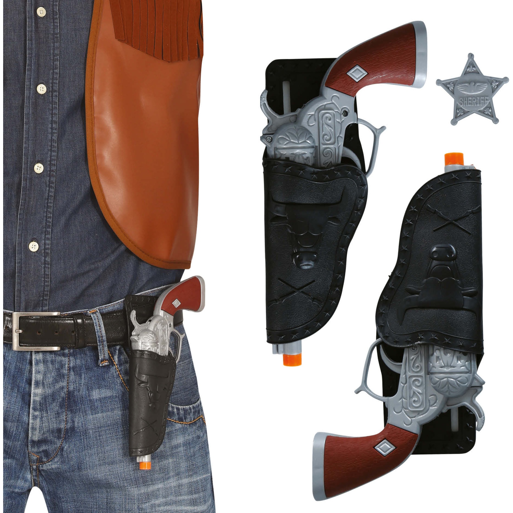 Son pistolas pequeñas pero están bastante bien. Hacen ruido al disparar y vienen con su funda para el cinturón.