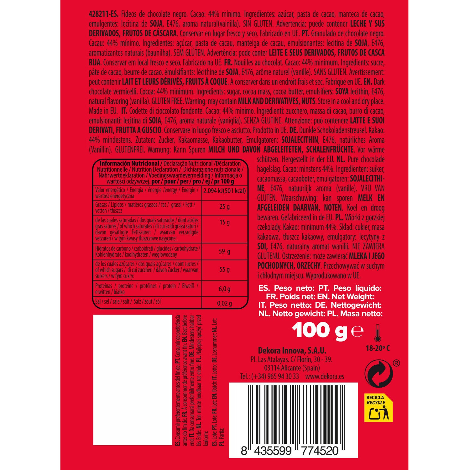 - Allergene: Schalenfrüchte und Erzeugnisse, Milch einschließlich Laktose und Erzeugnisse, Soja und Erzeugnisse.