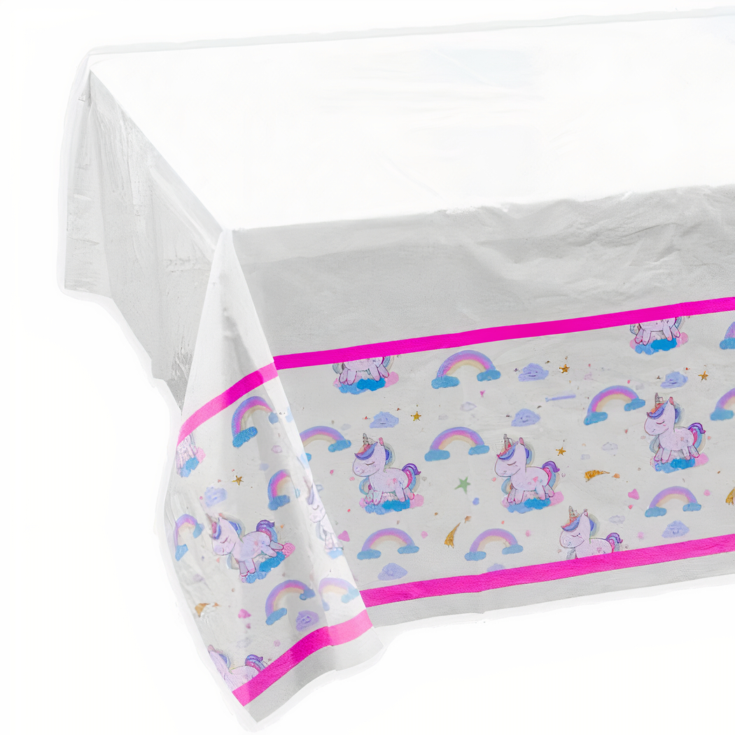 Einhorn-Tischdecke mit pastellfarbenen Regenbögen, 2,20 x 1,32 m
