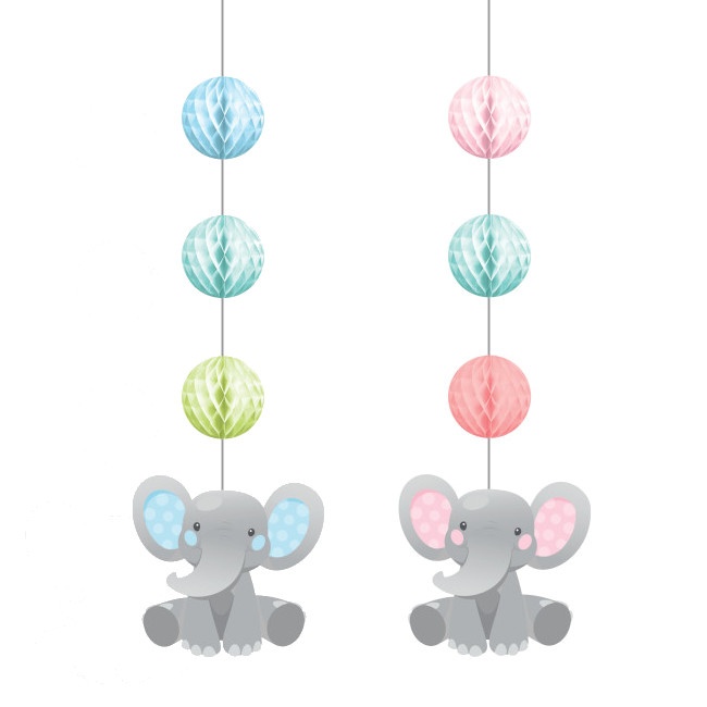 Dekorieren Sie die Party Ihrer Kleinen mit diesem niedlichen Anhänger, der aus nistenden Kugeln und niedlichen kleinen Elefanten besteht.