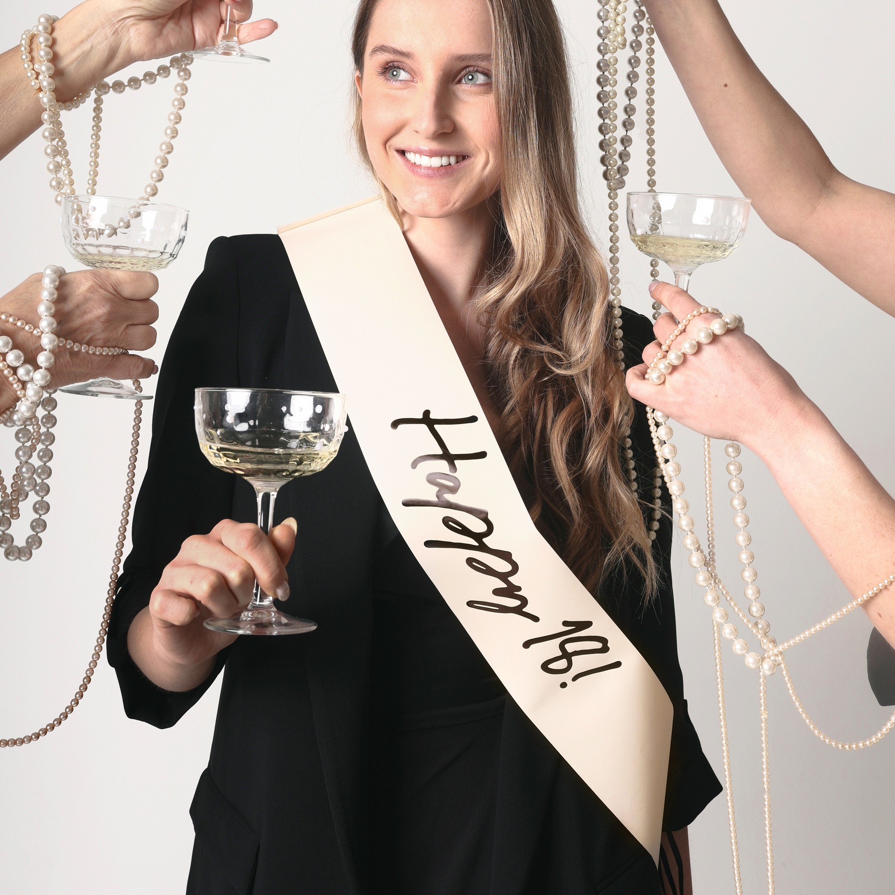 - Inklusive einem schwarzen Samtband zum Binden der Schärpe.