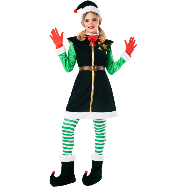 Wunderschönes Elfenkostüm mit allem, was man braucht, um die Helferin des Weihnachtsmanns zu sein.