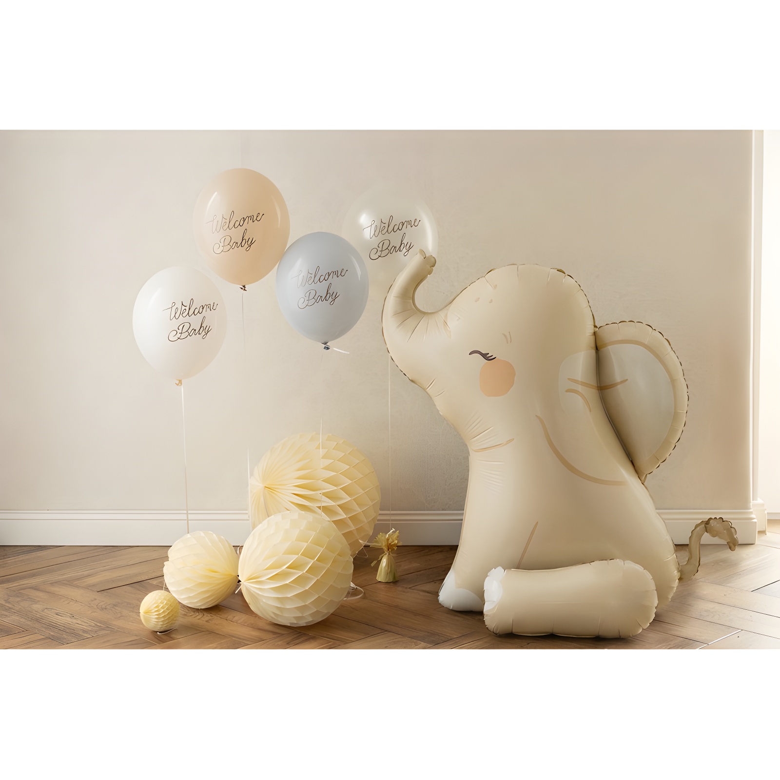 Folienballon in Elefantenform in Beige mit liebevollem, ausdrucksstarkem Look - ideal zur Ergänzung Ihrer Dekoration bei Feiern zur Geburt.