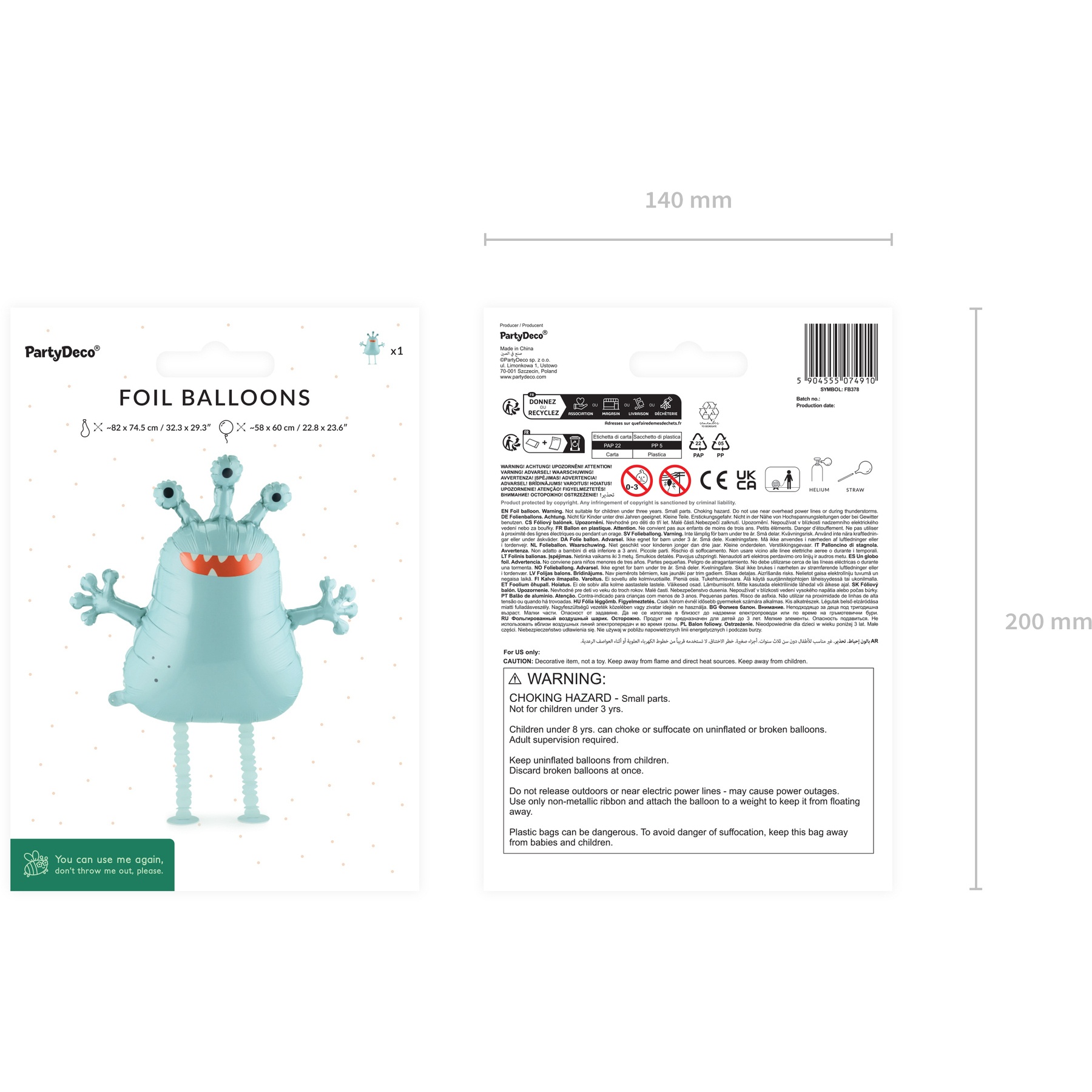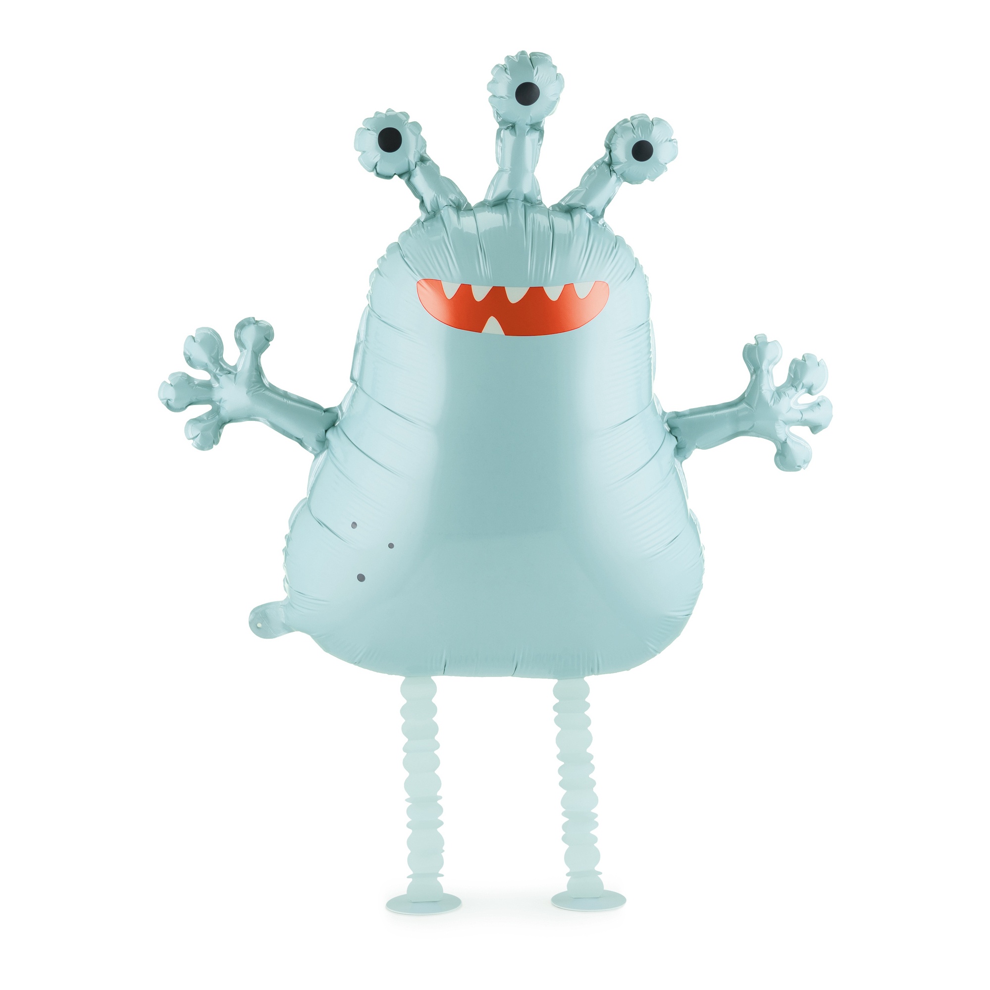 Folienballon mit witzigem Design eines gehenden Aliens in sanftem Puderblau. Größe vor dem Aufblasen ca. 82 x 74,5 cm; Größe nach dem Aufblasen ca. 58 x 60 cm. Beinlänge ca. 25 cm, die dem Ballon zusätzliche Bewegung und Präsenz verleiht.