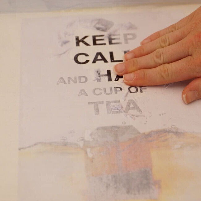- Nachdem das Bild auf die Oberfläche übertragen wurde, muss Photo Transfer Potch Lack aufgetragen werden.