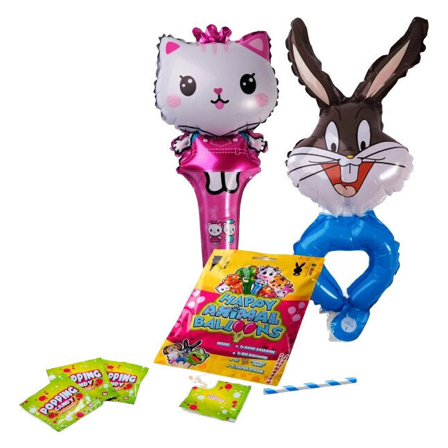 Fröhliches Tier mit 4 Tütchen Pulver + 2 Luftballons