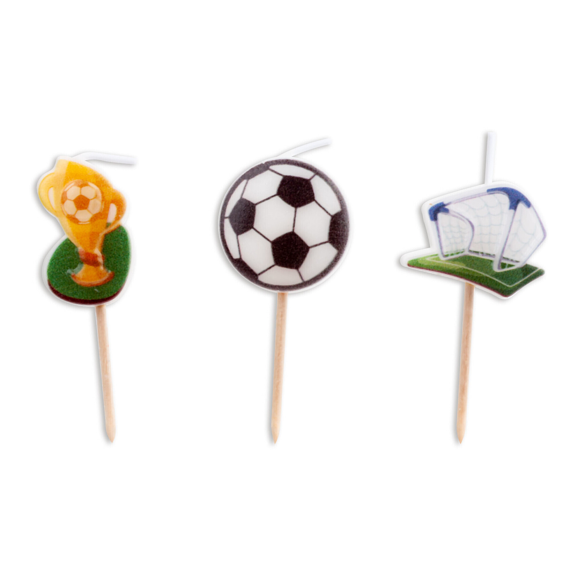 Fußballkerzen mit Pokal, Ball und Tor - 3 Stück