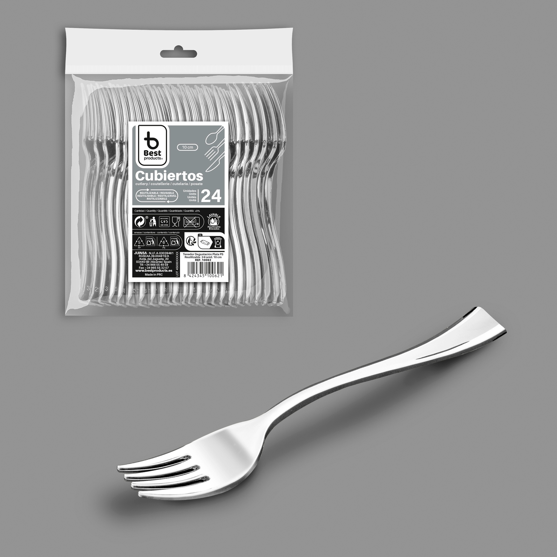 Gabeln 10 cm aus versilbertem Kunststoff - 24 Stück.