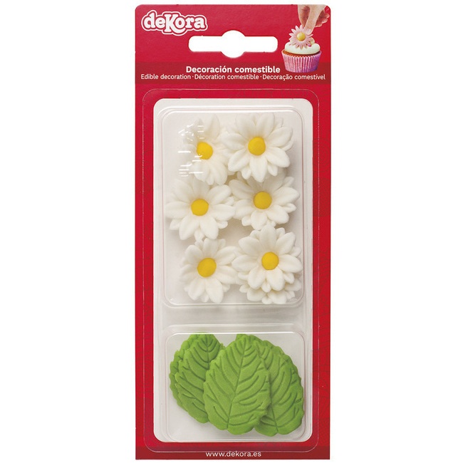 Gänseblümchen und Blätter Zuckerfiguren - Dekora - 12 Stück