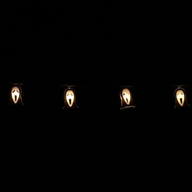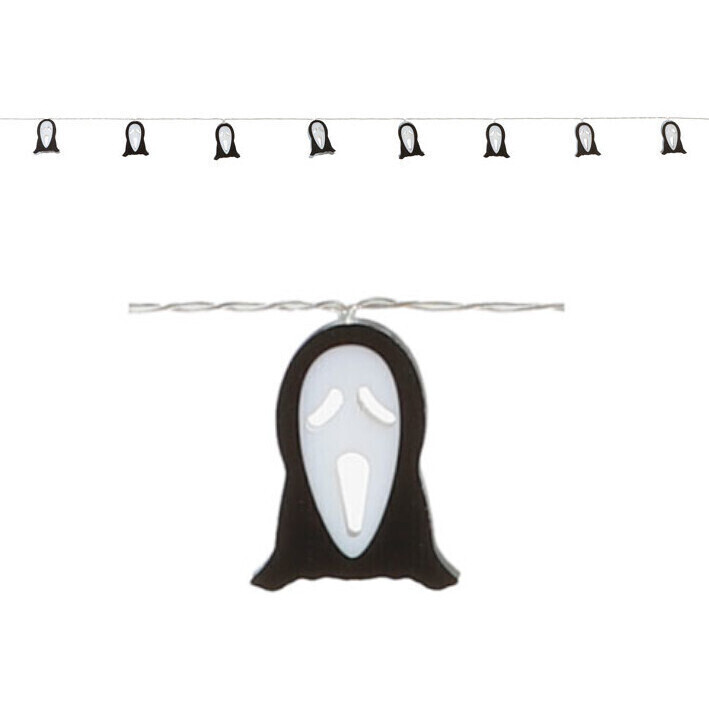 - Schaffen Sie eine gruselige Atmosphäre mit dieser Geistergirlande. Ihre weißen LED-Lichter beleuchten die schwarzen Figuren für einen eindrucksvollen Kontrast.
