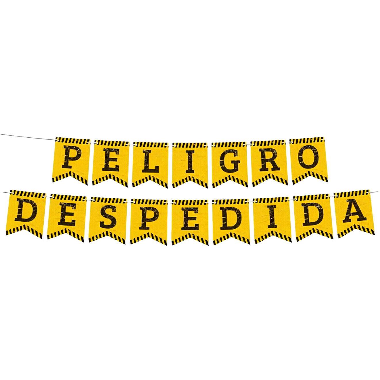 Gelb-schwarze Wimpelkette "Peligro Despedida" für Junggesellenabschied