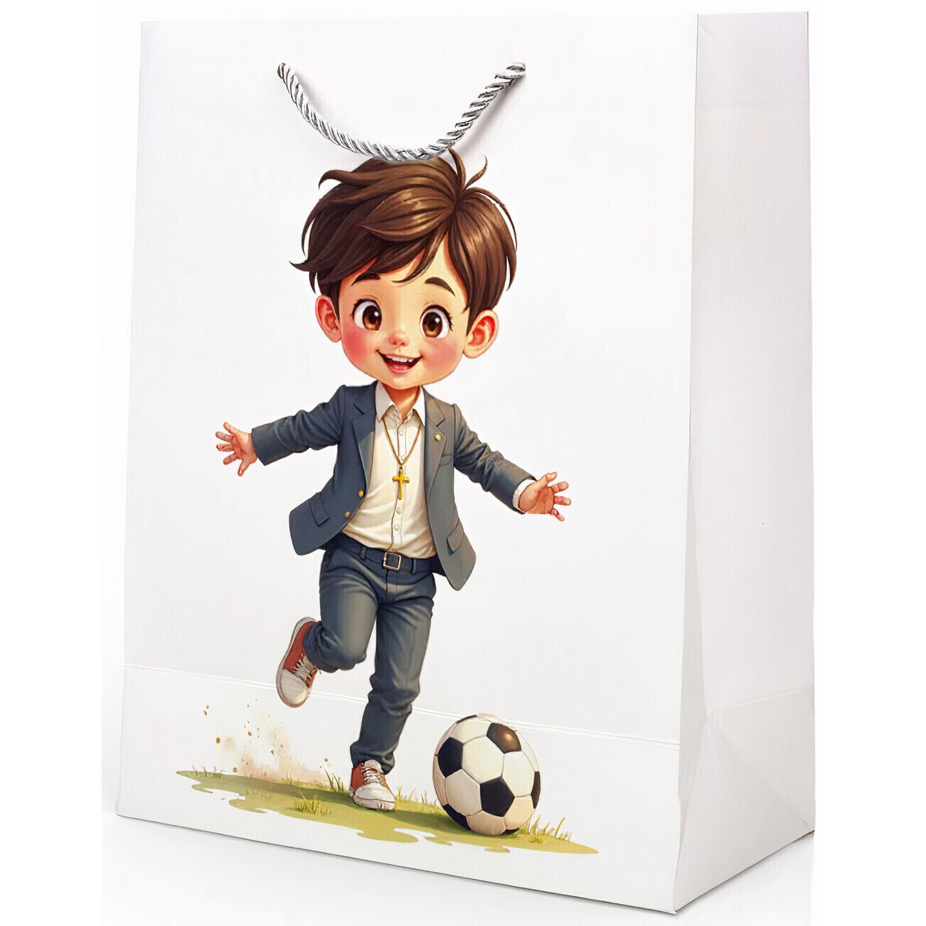 - Kommunions-Geschenktüte für Jungen mit Fußballmotiv - ideal, um Ihr Geschenk stilvoll zu verpacken.