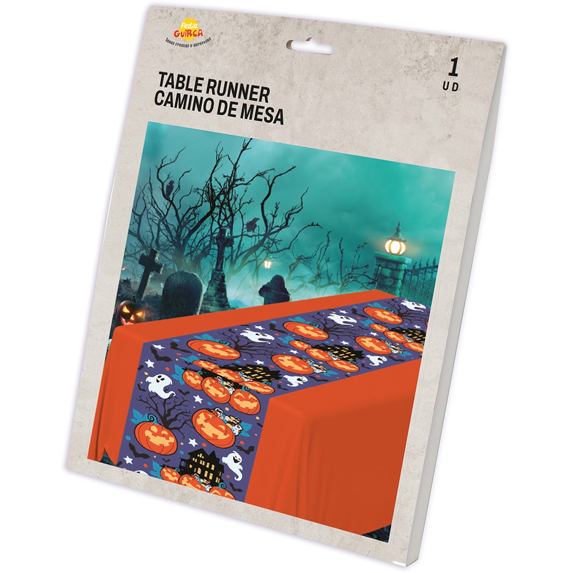 Tischläufer 28 cm mit Gespenstern und Kürbissen - 2,75 m
