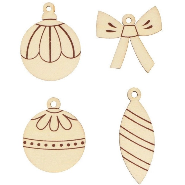 Gestanzte Holzfiguren für Weihnachtsdekorationen - 12 Stück