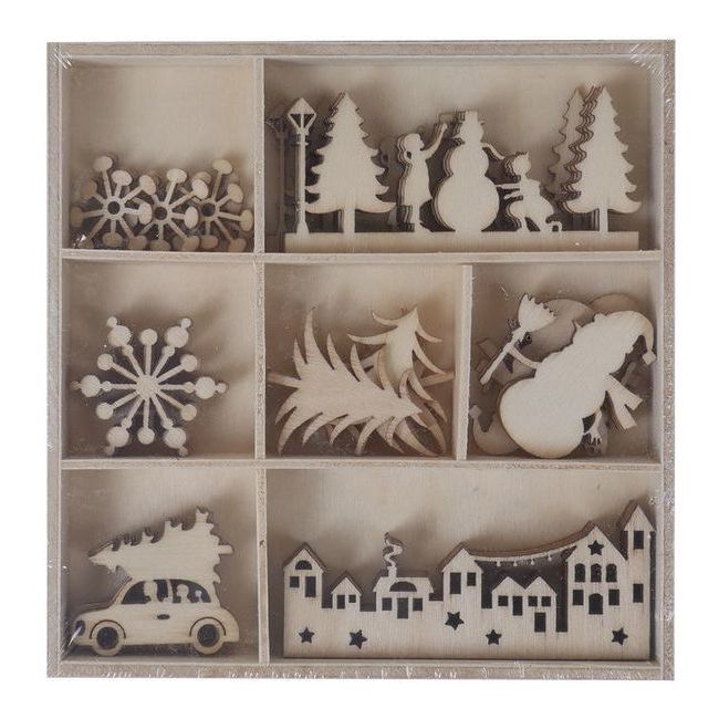 Gestanzte Holzfiguren des Weihnachtsdorfes - Artis Dekor - 35 Stück.