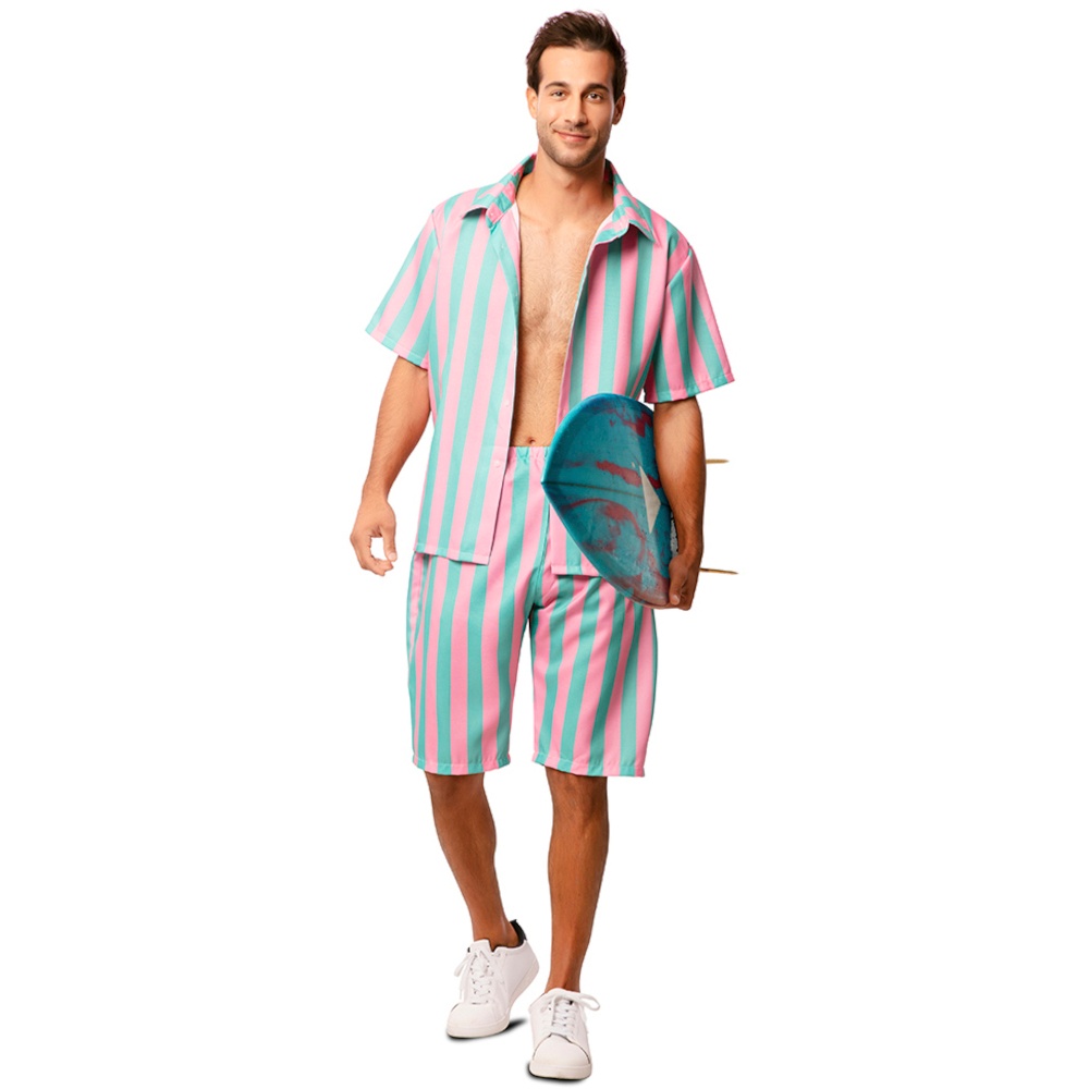 Ein witziges, gestreiftes Surferkostüm für Herren. Kräftige Farben, damit Sie garantiert auffallen.