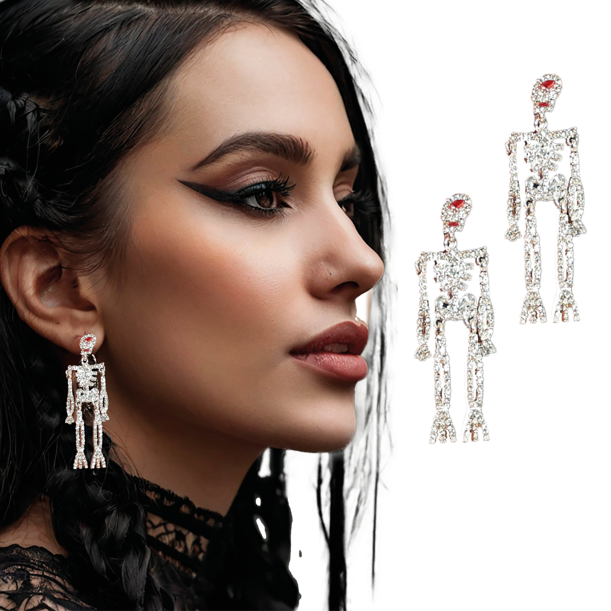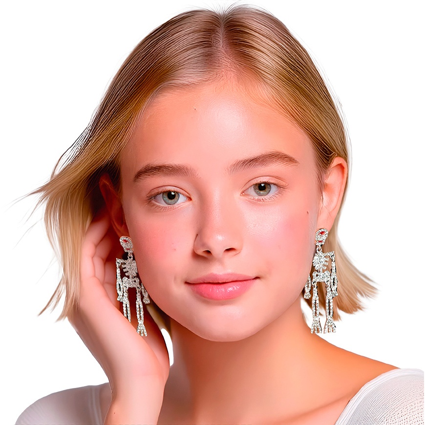 Glitzernde Skelett-Ohrringe, 6,5 cm - 1 Paar
