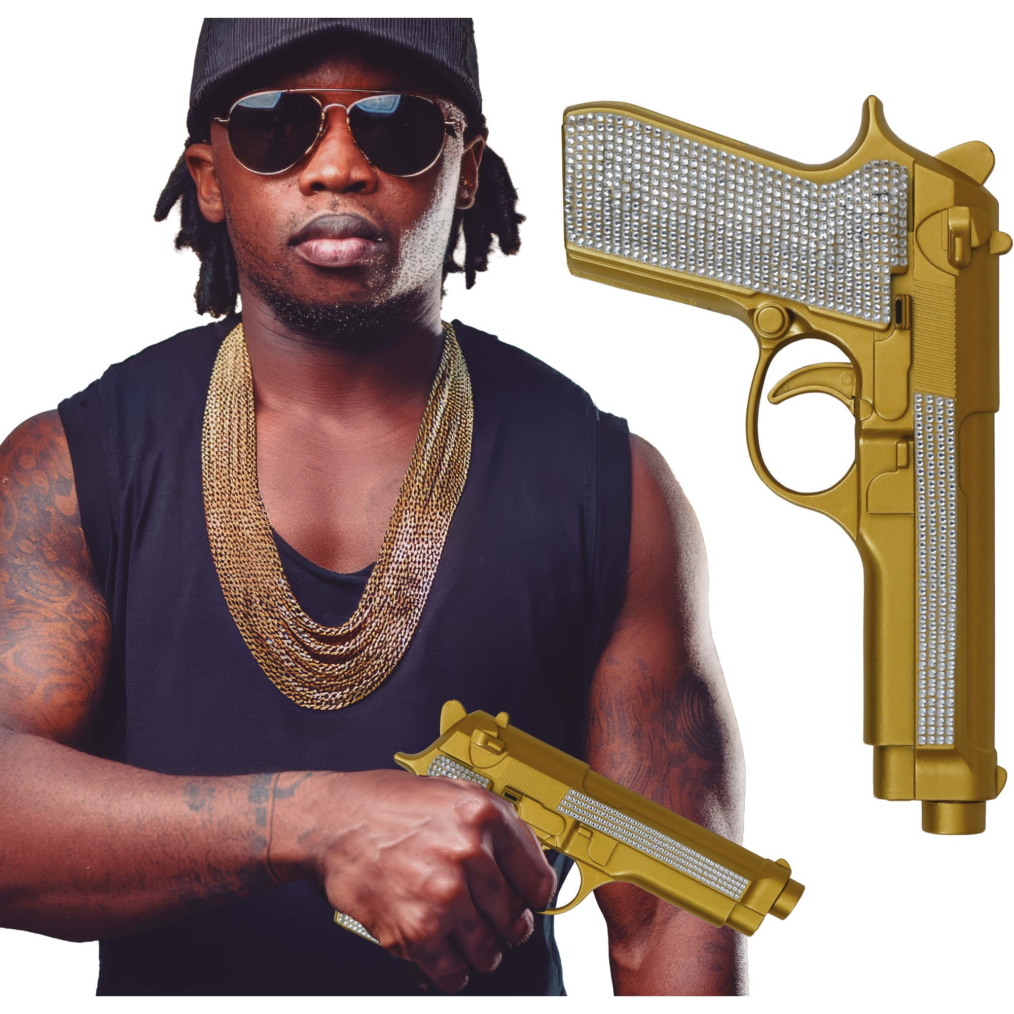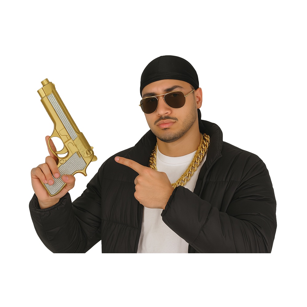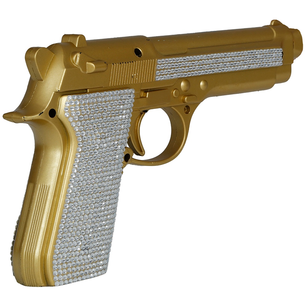 Dekorationspistole (25 cm) mit goldener Oberfläche und Strassdetails, die einen glamourösen, auffälligen Akzent setzen.