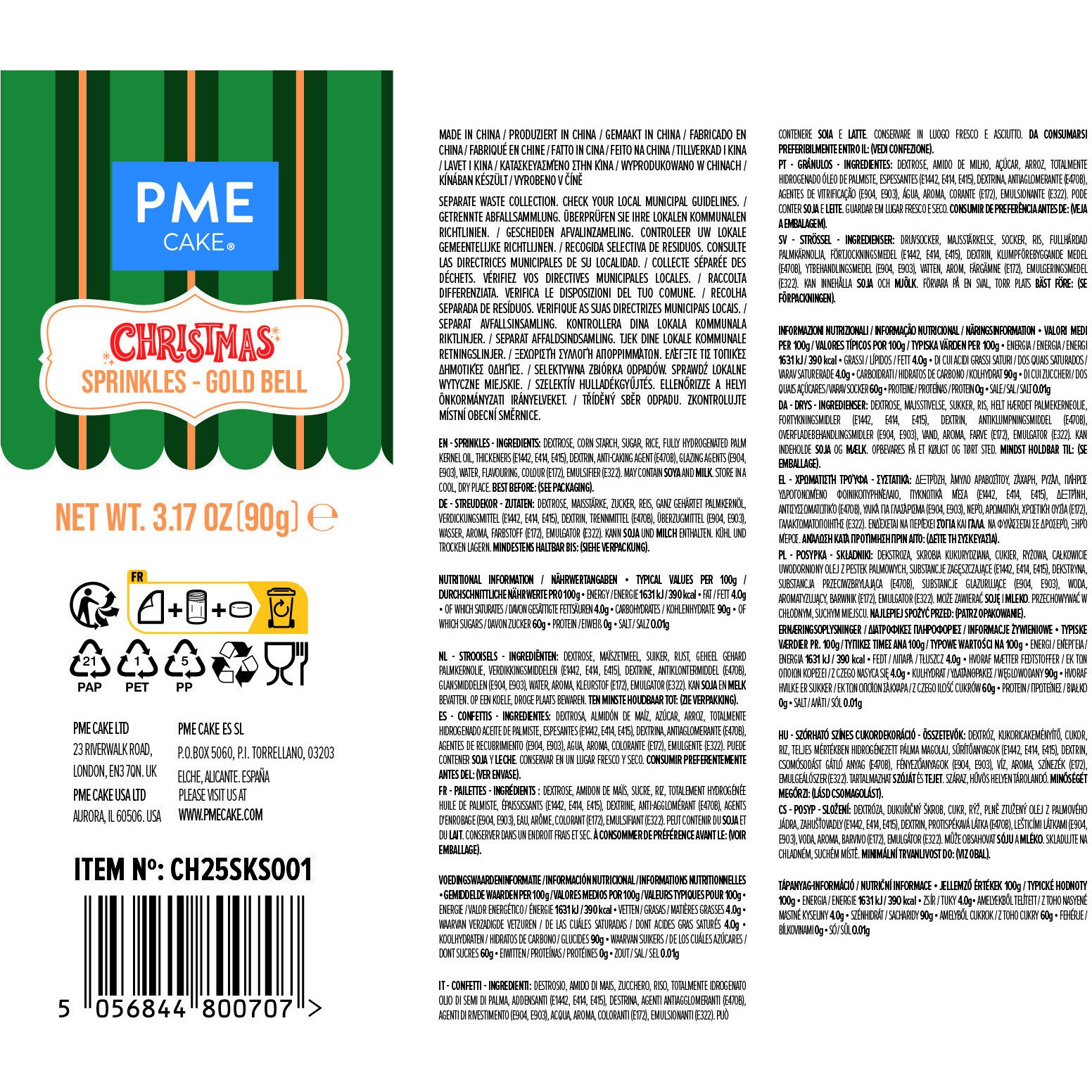 Goldene Glockenstreusel 90 g - PME
