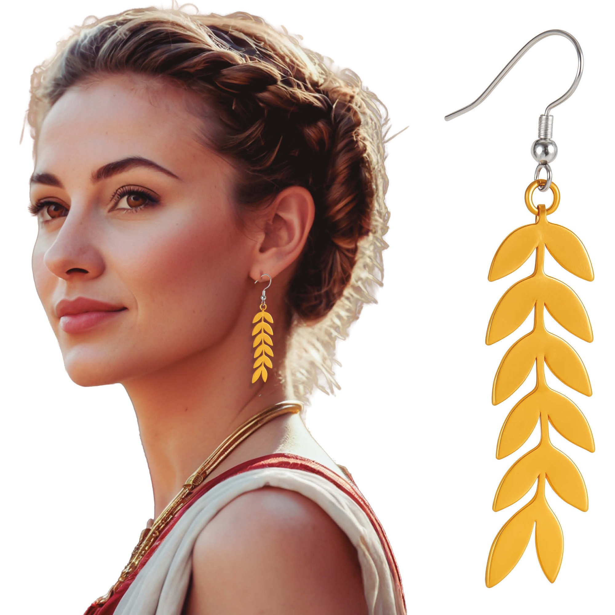Goldene römische Ohrringe, inspiriert von der klassischen Lorbeerkrone.