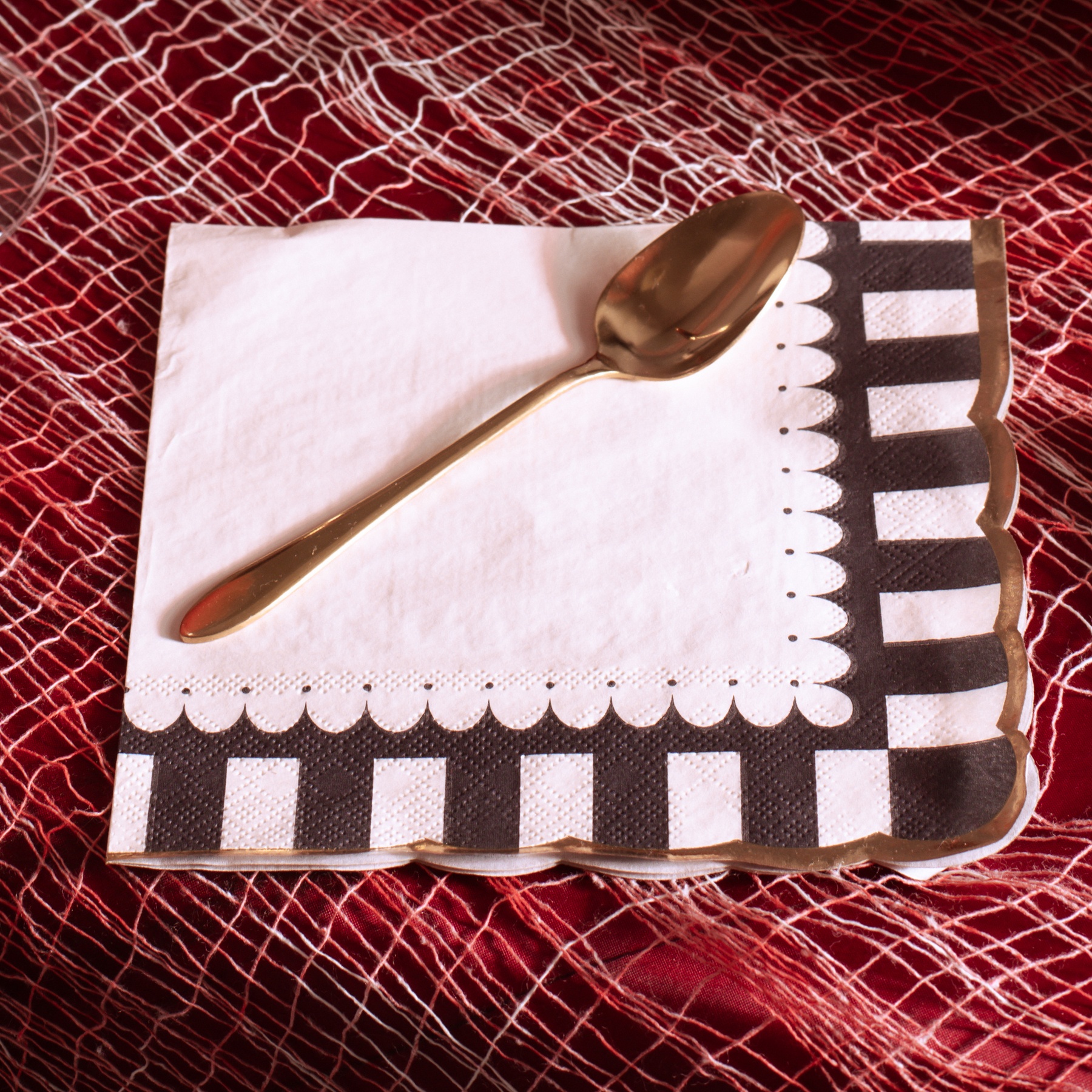 - Papierservietten mit einem goldenen, glänzenden Rand.