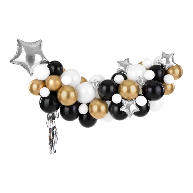 Goldene, weiße und silberne Ballongirlande 1,67 x 1,35 m - PartyDeco - 63 Stück