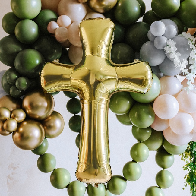 Goldenes Kreuz Ballon 91 x 63 cm - PartyDeco