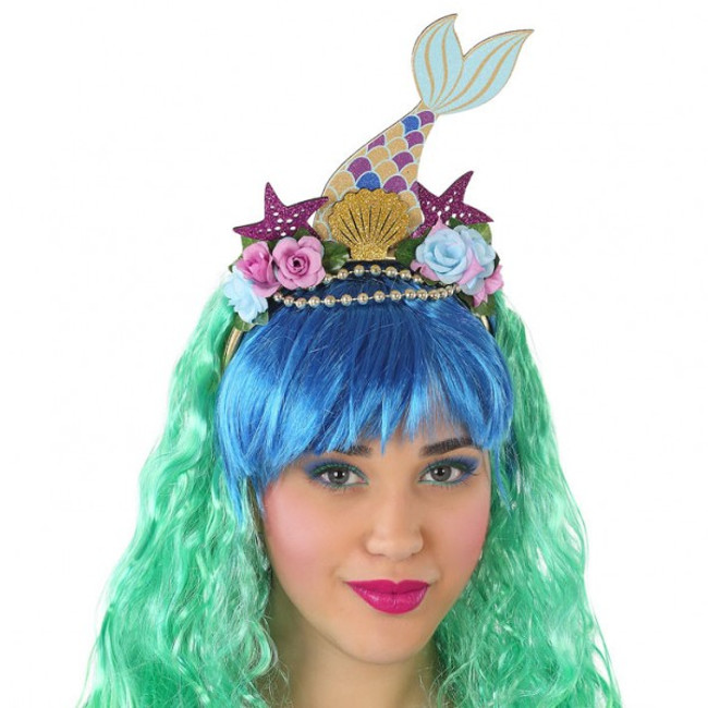 Dieses farbenfrohe, originelle und sehr auffällige Meerjungfrauen-Stirnband hat ein sehr aufwändiges Design, das Sie zum Mittelpunkt der Aufmerksamkeit macht.
