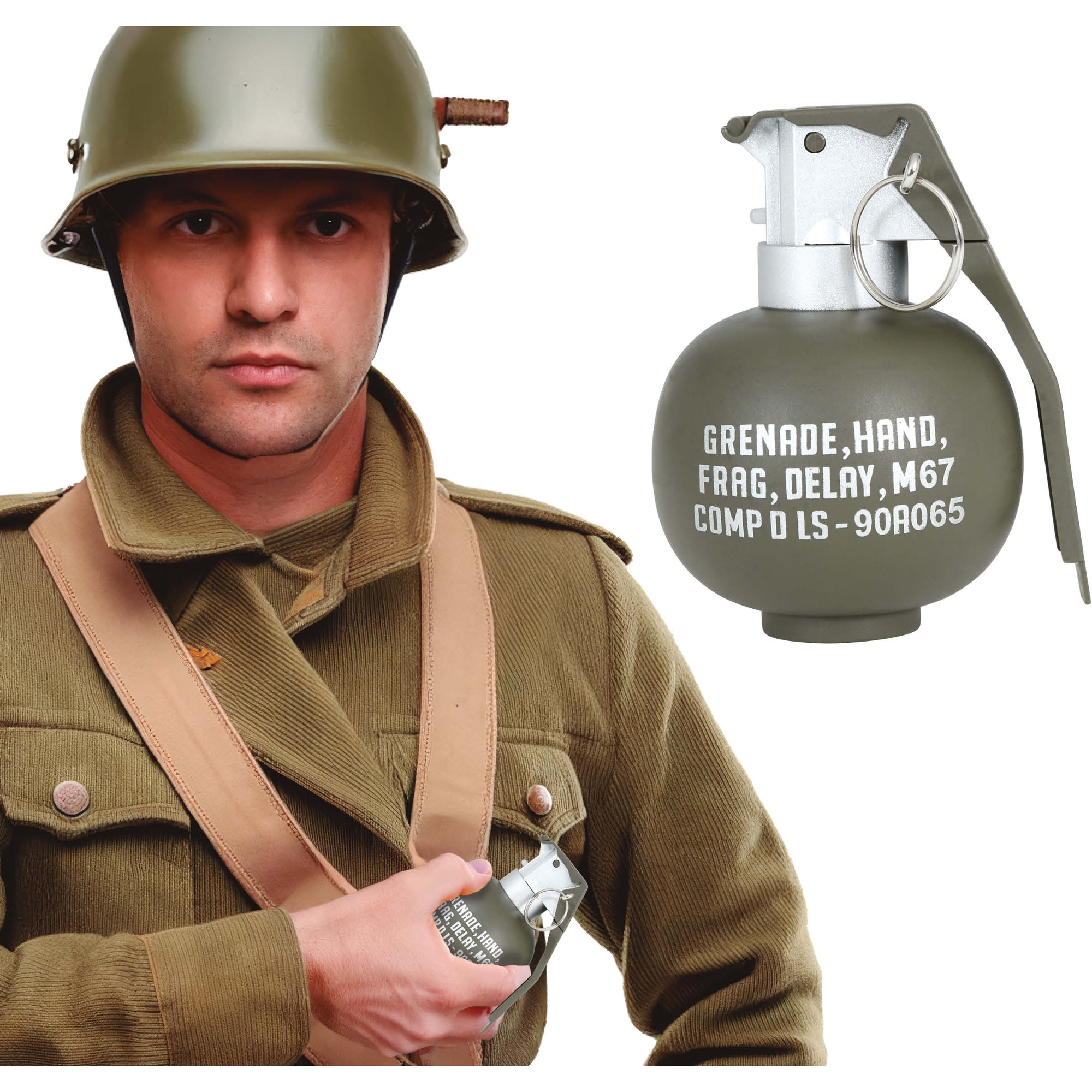 Replik einer Handgranate mit Licht- und Soundeffekten, konzipiert als Ergänzung für Militär- und Historienkostüme. Perfekt für Karneval, Theater und Veranstaltungen, bei denen Sie ein auffälliges, realistisches Detail ohne Gefahr hinzufügen möchten. Aus PVC gefertigt bietet sie eine robuste, zugleich leichte Ausführung, die das Anbringen und den Transport erleichtert. Ideal als Zubehör für Soldaten-, Kommandanten- oder militärische Looks.