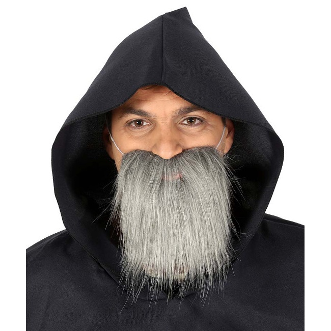 Ein graues Barthaar mit einem Gummiband, um es hinter den Ohren zu befestigen.