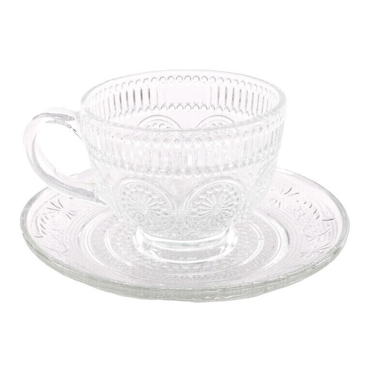 Gravierte 200 ml Glas-Tasse mit Unterteller