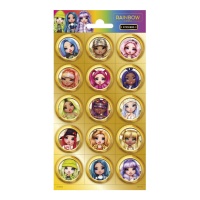 Aufkleberbogen mit den verschiedenen Charakteren der Rainbow High.