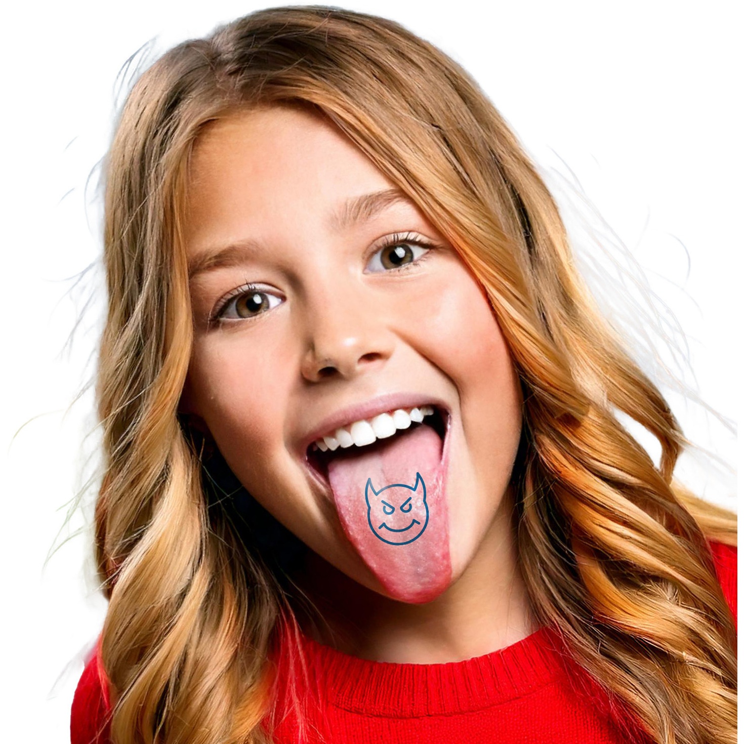 - Zungenmaler, legen Sie die Waffel auf Ihre Zunge und sehen Sie, wie das Muster übertragen wird.