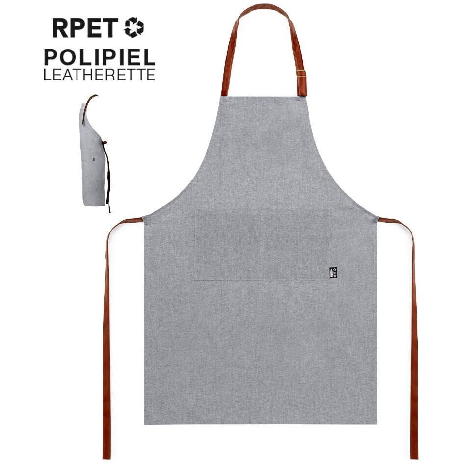 - Naturlinie-Schürze aus RPET-Material, hergestellt aus recyceltem Kunststoff.