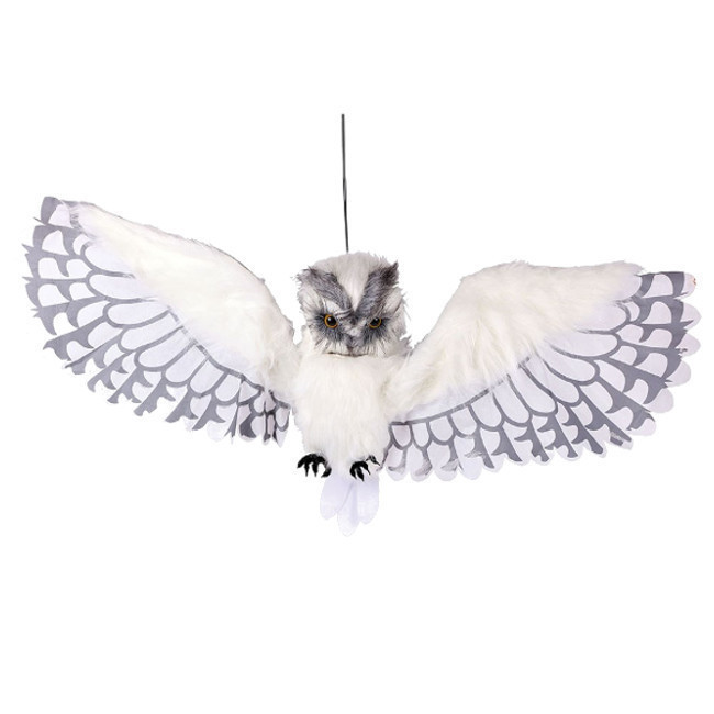 Dies ist eine hängende Figur einer künstlichen Eule, die Bewegungen machen kann und die Zuschauer glauben lässt, dass sie echt ist.