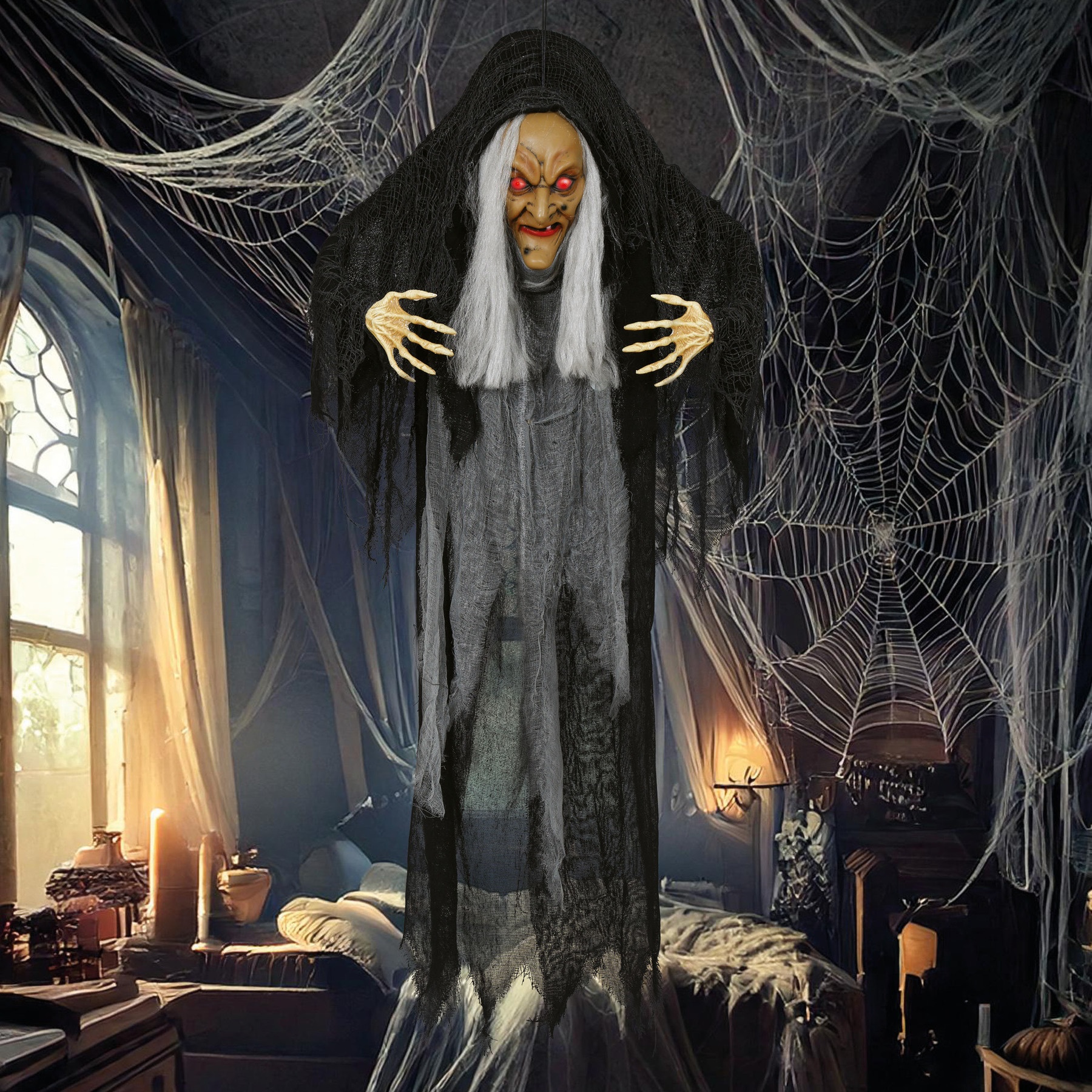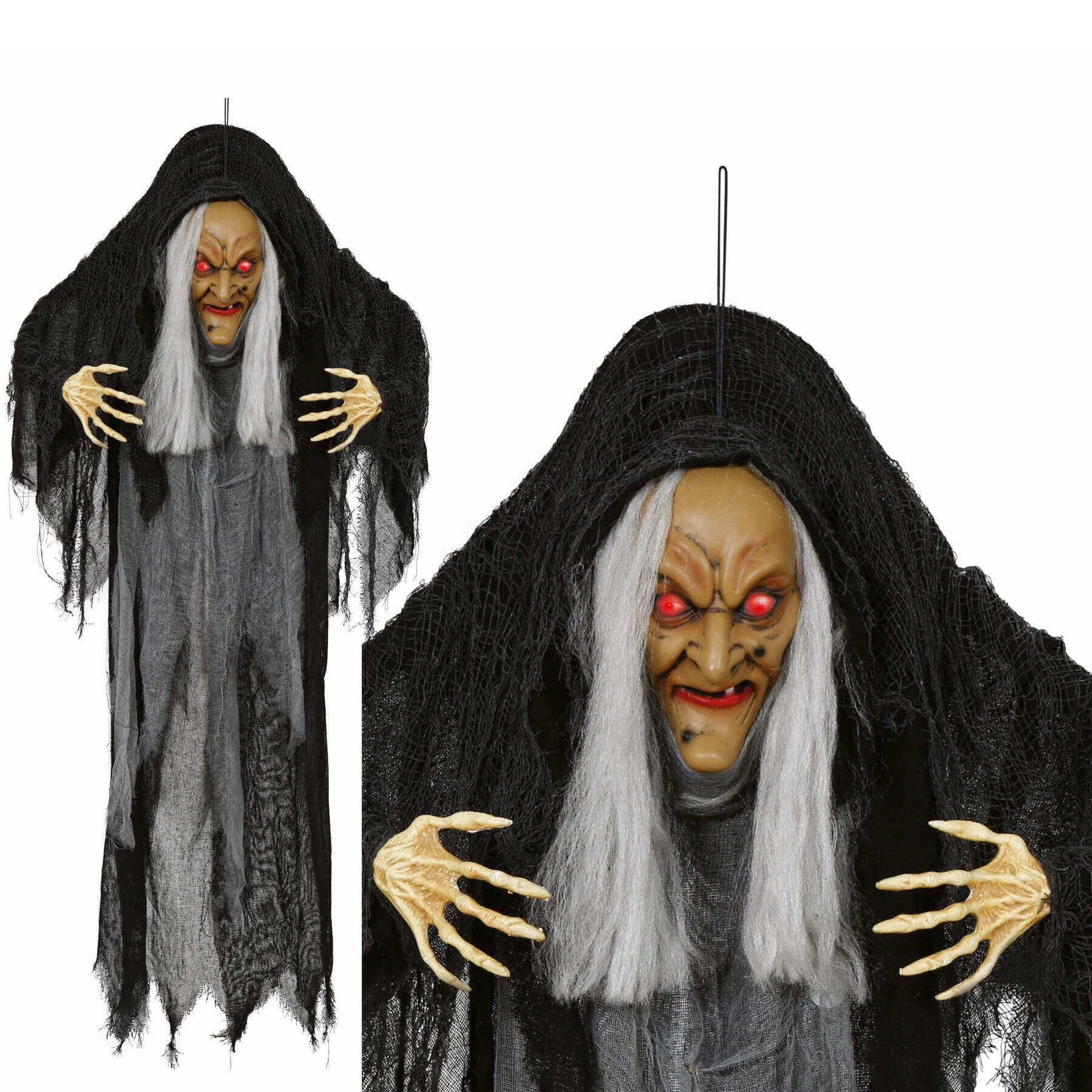 Hängende Hexe mit Licht, Sound und Bewegung, 1,20 m