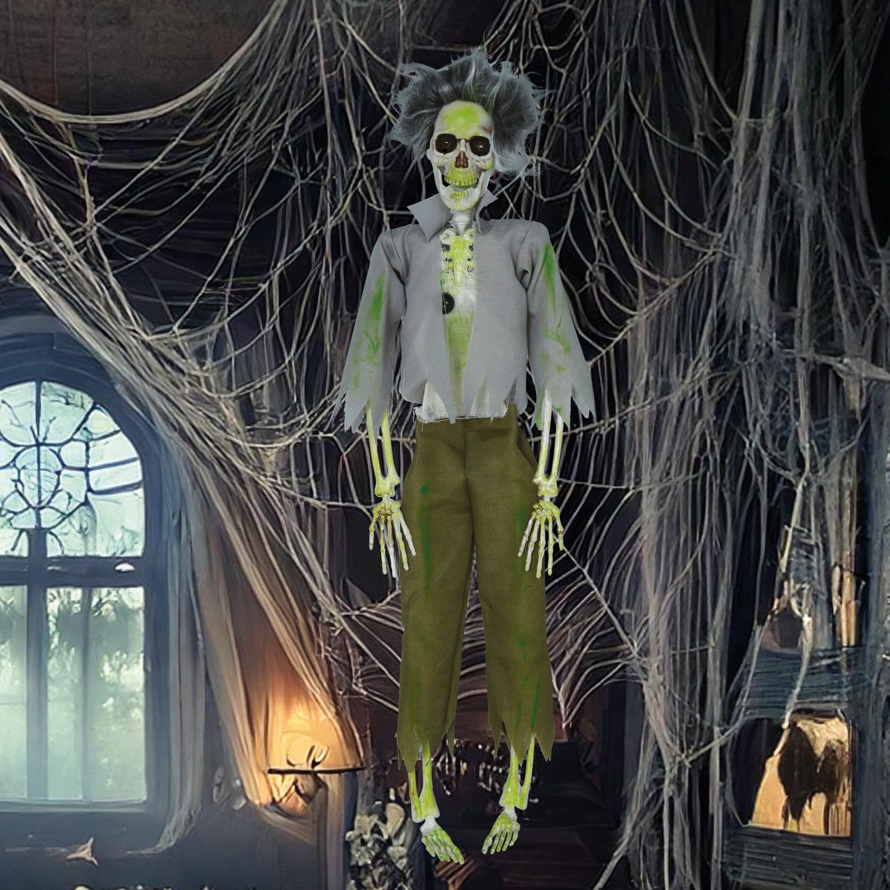 Hängender Zombie-Skelett in Grün 45 cm