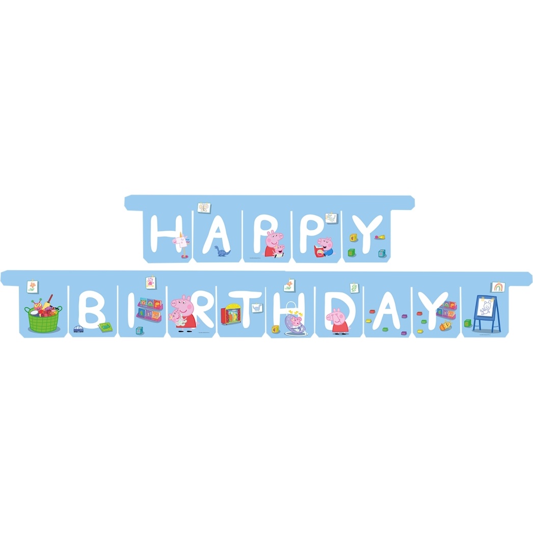 Dekorieren Sie den Kindergeburtstag mit der Peppa Pig Happy-Bday-Girlande - entworfen, um eine heitere und verspielte Atmosphäre zu schaffen. Die bunten Illustrationen von Peppa und ihren Freunden ziehen die Kleinen sofort in ihren Bann. Die Wimpel tragen klar lesbare Buchstaben, die zusammen die Botschaft "HAPPY BIRTHDAY" ergeben, und lassen sich mühelos anbringen. Leicht und auffällig gestaltet, ist die Girlande ideal für kindgerechte Dekorationen und Erinnerungsfotos der Feier.