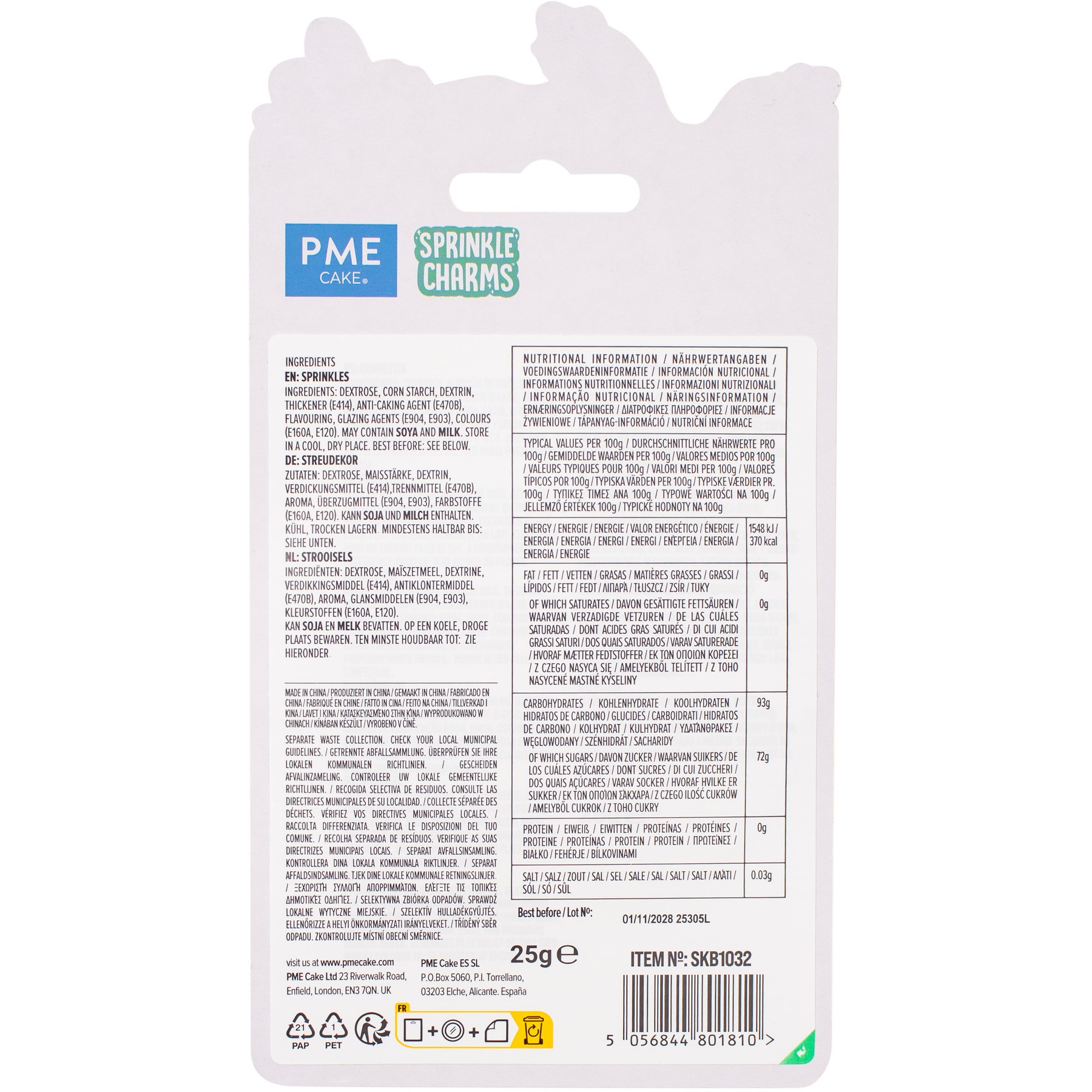 Zutaten: Dextrose, Maisstärke, Dextrin, Verdickungsmittel (E414), Rieselhilfe (E470B), Aroma, Überzugsmittel (E904, E903), Farbstoffe (E160A, E120).