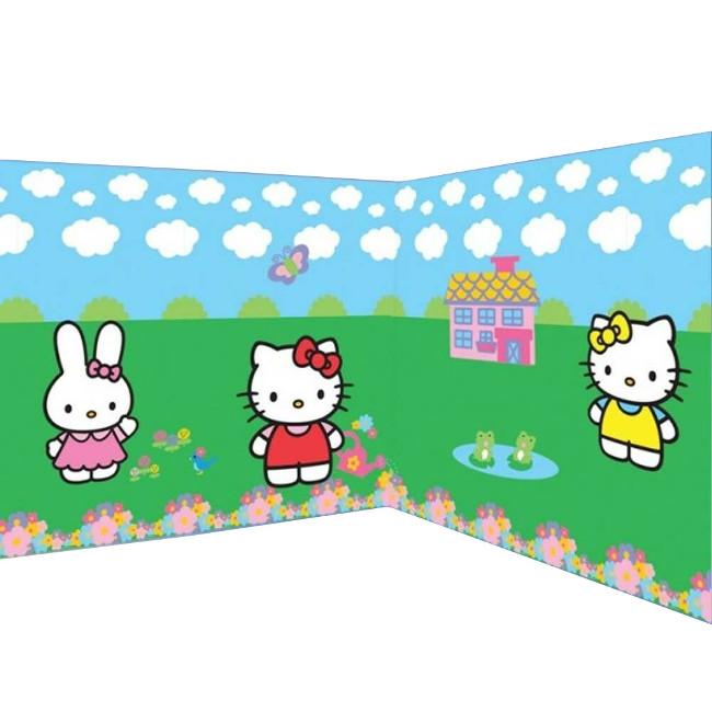 Dieses Produkt besteht aus 2 Kunststoff-Wandtafeln und 3 transparenten Kunststofftafeln mit dem Aufdruck der berühmtesten Katze von Sanrio. Die Folien ergänzen sich gegenseitig, sind aber nicht selbstklebend, so dass wir empfehlen, Klebeband oder einen ähnlichen Klebstoff zu verwenden.