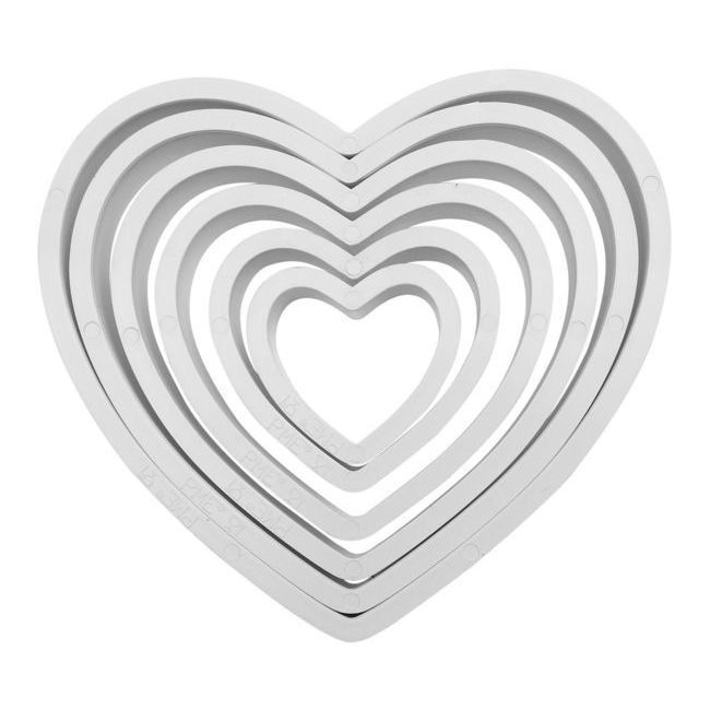Herzförmige Ausstecher in verschiedenen Größen für romantische Kekse.