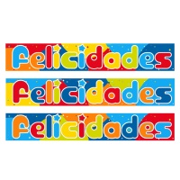 Rechteckige Banderole mit dem Wort "Happy Birthday" auf rotem, blauem oder orangefarbenem Hintergrund mit farbiger Beschriftung. Jede Packung enthält 2 Stück in verschiedenen Farben.