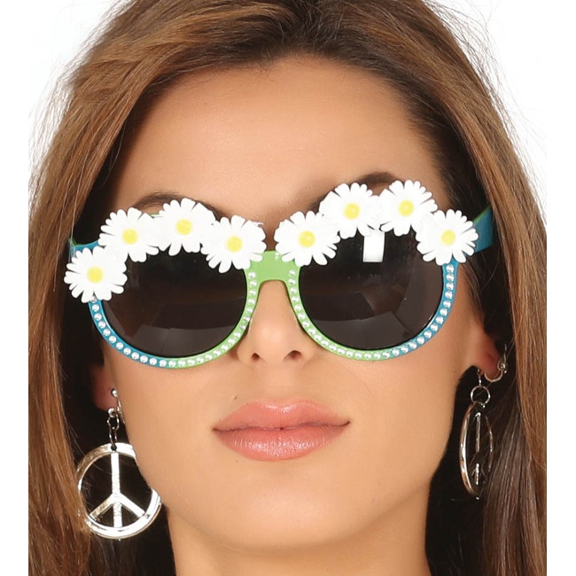 Mit dieser Brille können Sie Ihr Hippie-Kostüm stilvoll vervollständigen. Dieses Modell hat dunkle Brille.