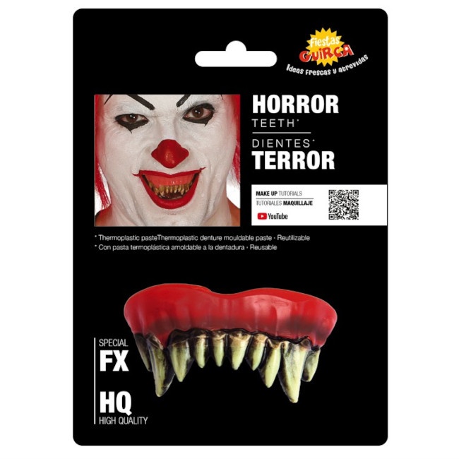 Dieses Produkt besteht aus dem oberen Teil eines Satzes von scharfen Zähnen, ideal für die Darstellung von Vampiren, Zombies oder anderen Horror-Themen für Halloween-Kostüme.