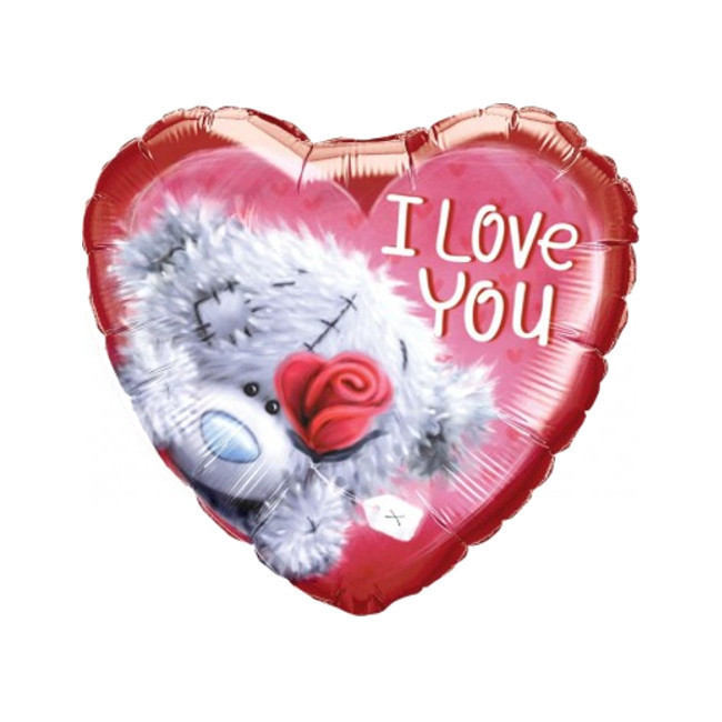Ein romantischer Ballon mit der Botschaft "I Love You", einem Teddybär und einer Rose. Die perfekte Dekoration für Ihren Valentinstag oder jeden anderen romantischen Anlass.