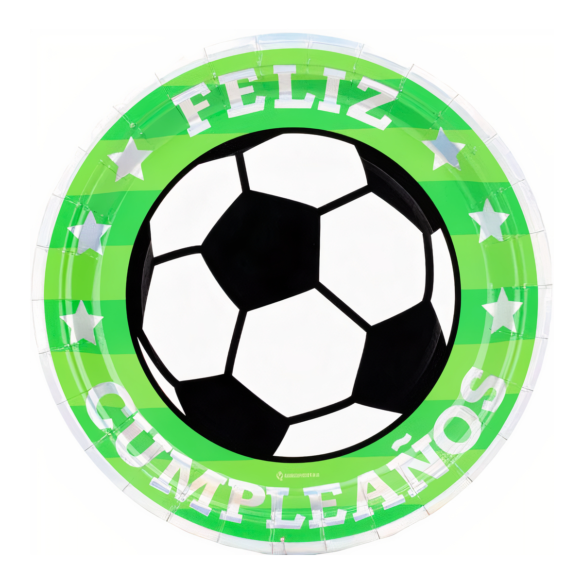 Irisierende Fußball-Pappteller "Feliz Cumpleaños", Ø 18 cm - 8 Stück