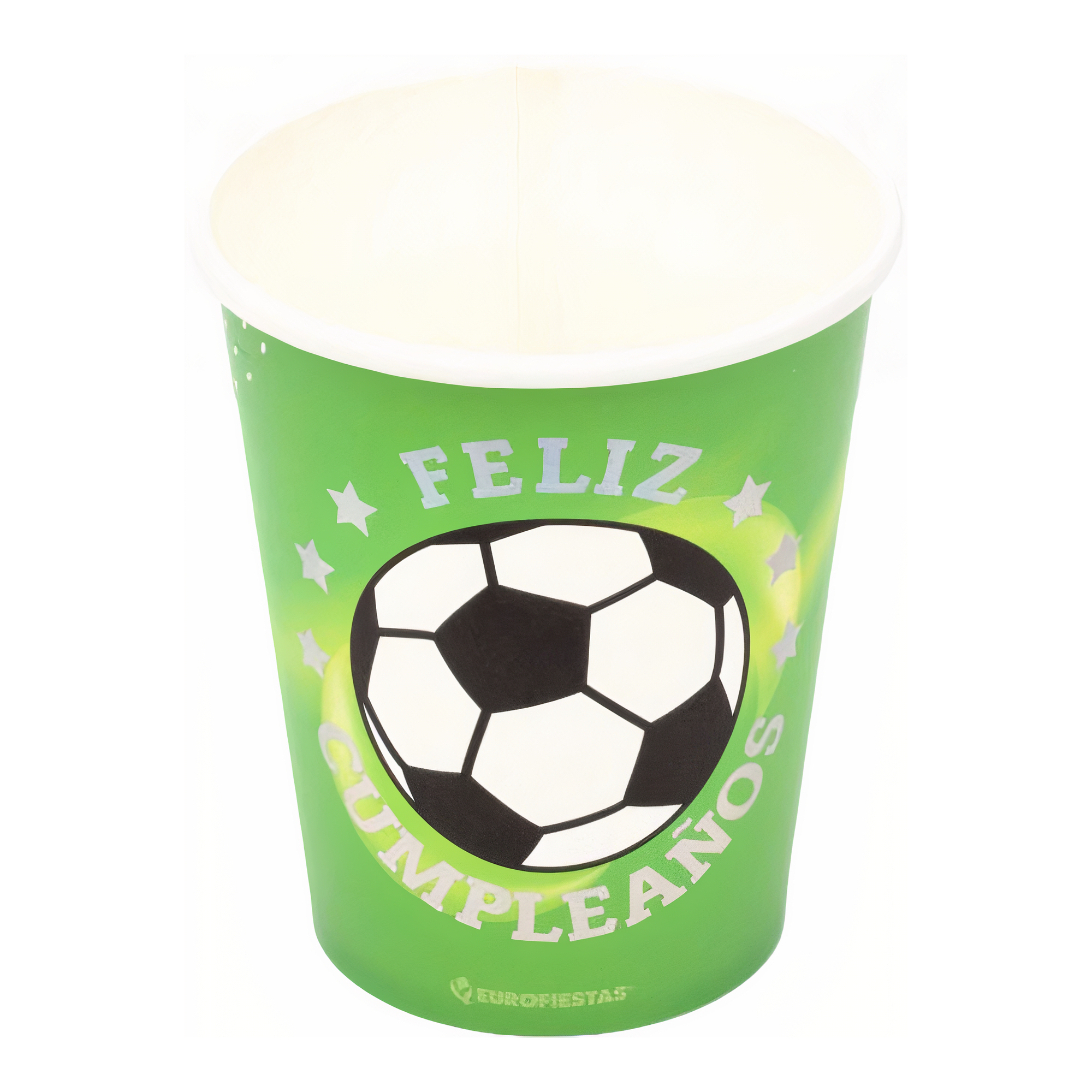 Irisierende Fußball-Partybecher mit "Feliz Cumpleaños" - 8 Stück